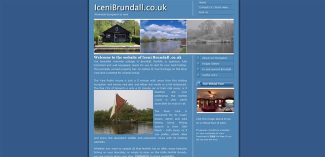 The website of this holiday home for rent on the River Yare, not only has pages for prices, booking dates, photograph gallery and local links and information, but also has a room plan of the property with virtual tour. Virtual tours are in the QuickTime format.