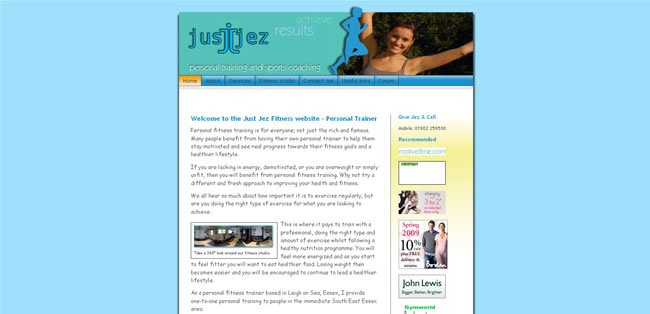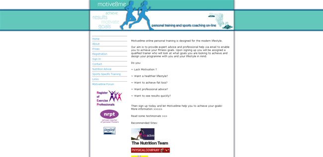 This site for a personal trainer is has a fully interactive 'back end' enabling clients to log into their accounts and receive training 'hints, tips and downloads'.