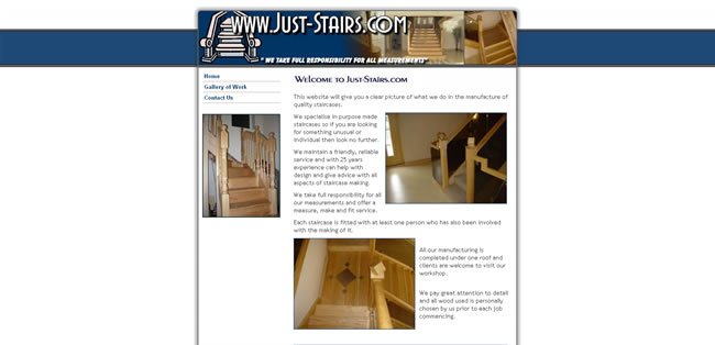 A simple economical 3 page solution that met the clients needs. We also met the quick deadline at the clients request. This site is soon to be updated with a full searchable stair parts database.