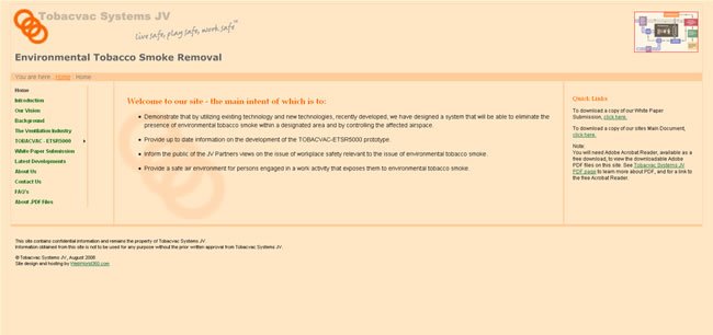 Recently updated site using left navigation and having the whole site downloadable as a pdf file. Also has an animiated banner built using Adobe Flash.